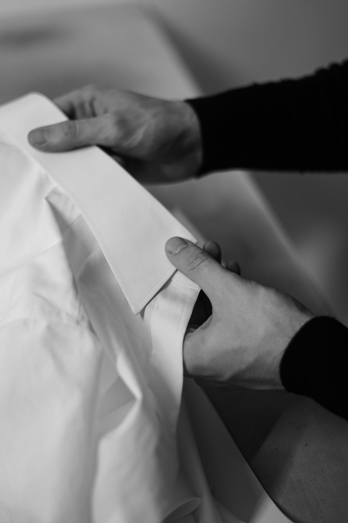 Chaque création sur-mesure débute par une rencontre, un échange guidé par notre chemisier pour comprendre les aspirations de celui qui portera la chemise. Le choix du tissu, l’usage, le style et la ligne sont discutés en détail, tout comme les spécificités du col et des poignets, ainsi que les initiales, touches hautement personnelles.