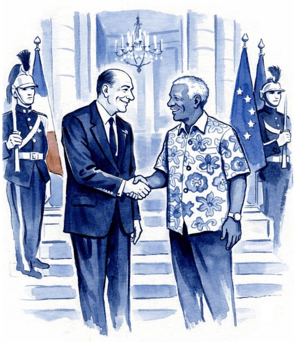 Lors d’une visite officielle, Jacques Chirac, alors Président de la République, accueille le Président sud-africain Nelson Mandela et lui offre une chemise Thuillier en cadeau, objet du raffinement à la française.